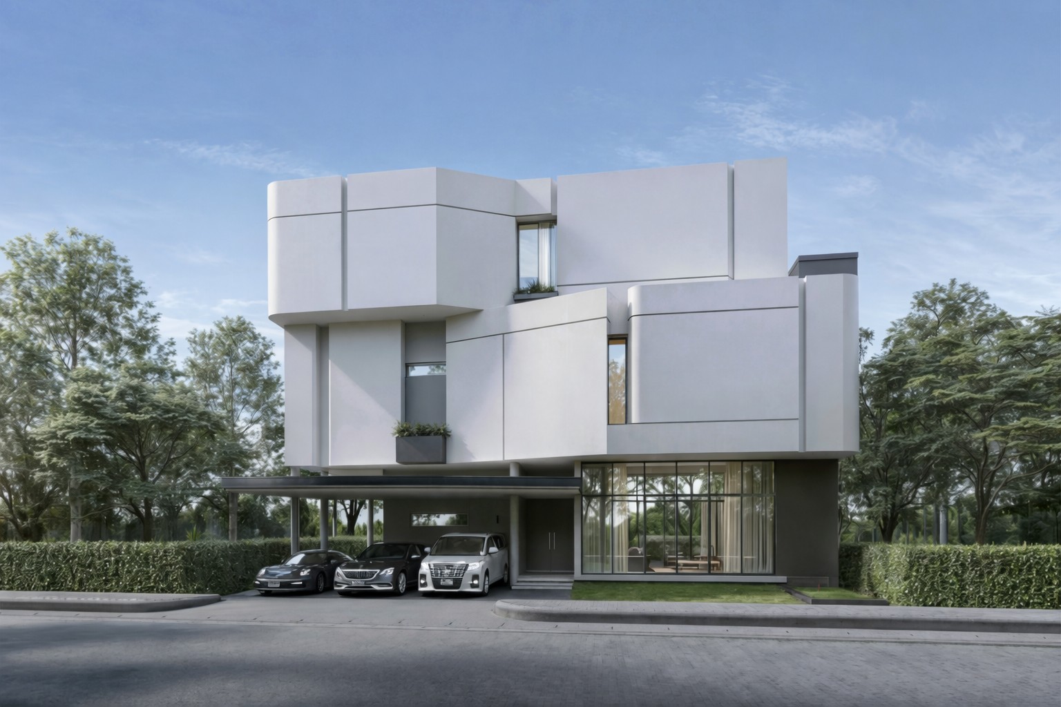 สถาปัตยกรรม Modern White Geometry แห่งใหม่บนทำเลบางแสน